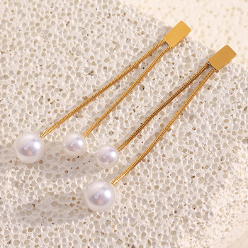 Dreamidea Vergulde Roestvrijstalen Parel Oorbellen Met Dubbele Kwastjes Elegante Sierlijke Sieraden Voor De Avond