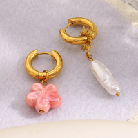 Dream idea vergoldete asymmetrische Edelstahl ohrringe mit rosa Blume und Barock perle, süßer zierlicher Schmuck